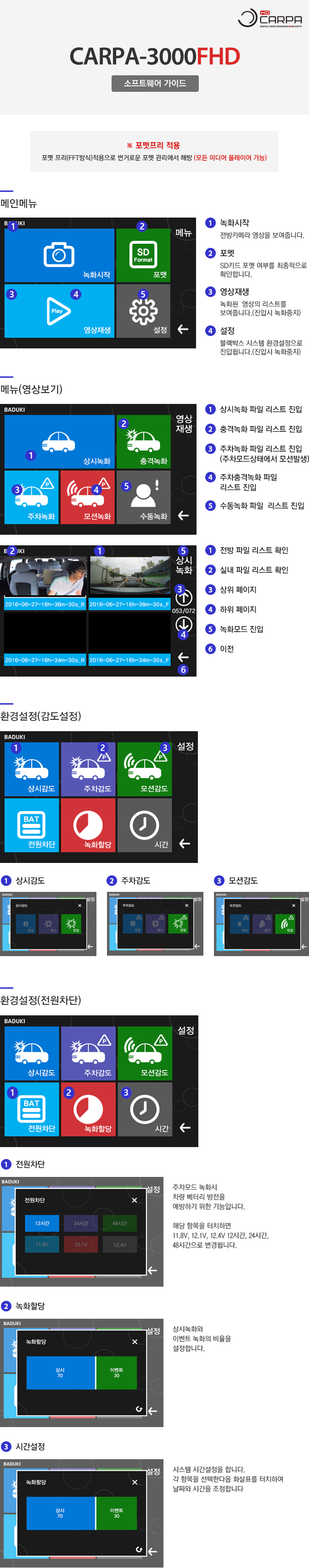 충격감지 전 10초 후 20초 총 30초녹화 |